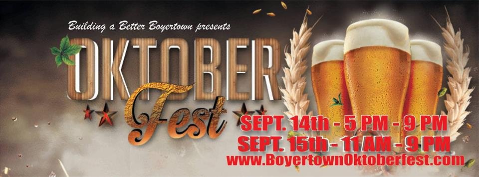 After lobbing water balloons, soaring through the air, roaring down the streets, and working hard, it's time to drink to another awesome week. This upcoming event also holds a special place in my heart, as it's one of the first events I covered on FestForschers - before BerksCal took event sharing to a whole new level. With plenty of reasons to celebrate, including the 1 year anniversary of FestForschers, come down to Boyertown to enjoy a true Berks County event! Next weekend everyone can enjoy two whole days of food, crafts, games, music, and (of course) beer. Food vendors will be at Boyertown for both days, and live music will be performed for everyone. There's also the Boyertown Oktoberfest 5K run Saturday morning, crafters all day Saturday, party games, and even two bounce houses. There might even be more to come, as the awesome organization Building A Better Boyertown is currently making menus, drink lists, and entertainment schedules - so check their websites often for more updates. The event is free to attend, and all proceeds spent during the event go to help Building a Better Boyertown host an even bigger Oktoberfest next year, as well as more events and programs to help the town. This event made the featured lists last year and it's earned that spot again; come see why the Boyertown Oktoberfest is one of the best events in Berks County!